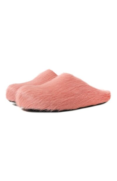 Для пошива сабо Fussbett с закрытым круглым мысом использовали телячью кожу с коротким мехом. Модель с широкой подошвой дополнили анатомической стелькой, отвечающей за правильное положение стопы.