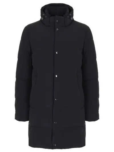 -Черный удлиненный стеганый пуховик от MONTECORE.