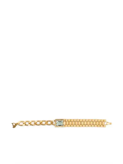gold-tone gold plated silver polished finish claw/prong setting emerald cut green amethyst watch frame detail Cuban-link chain clip-lock fastening Normal everyday use and external agents may reduce the lustre of gemstones and gold surfaces. To maintain, use specific, non-abrasive products specially meant for cleaning jewellery. Hallmarked in the United Kingdom at the London Assay Office.