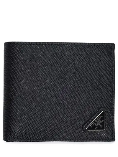 -Распашная модель-бифолд прямоугольной формы с отделениями для купюр, слотами для визиток и карт, треугольным логотипом бренда спереди.