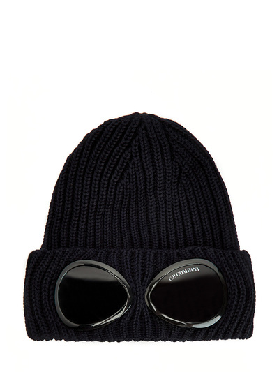 Стильная мужская шапка в оттенке ночного неба от C.P. Company. Модель из мягкой пряжи на основе ценных волокон шерсти надежно защищает от холодного воздуха. Аксессуар в технике эластичной вязки трансформируется благодаря широкому отвороту с защитными очками-линзами Goggles.