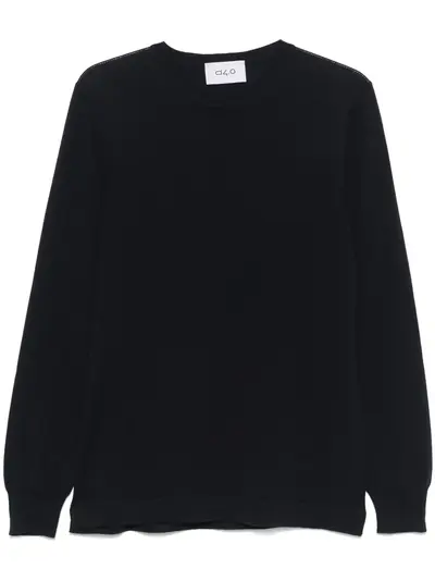 navy blue virgin wool fine knit crew neck long sleeves side slits straight hem