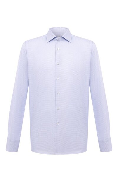 Рубашка силуэта Regular fit органично впишется и в комплект для офиса с нестрогим дресс-кодом, и в повседневный образ. Для пошива модели с воротником кент использовали хлопковую ткань с графичным микроузором.
