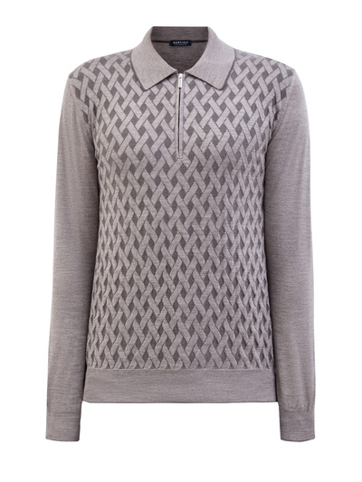 Лаконичный джемпер-поло от Bertolo создан вручную из тонкой шерсти и шелка. Благодаря уникальным свойствам натуральных материалов модель поддерживает температуру тела на оптимальном уровне и сохраняет ощущение комфорта. Геометрический узор в технике интарсии вносит расслабленный штрих в повседневный образ. Детали: эластичная отделка кромок, отложной ворот, застежка на молнию с брендированным пуллером.