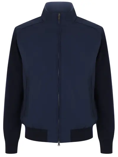-Синяя куртка из шерсти и плащевки от PAUL&SHARK.