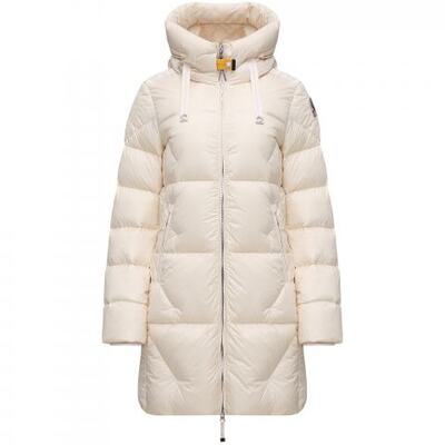 Пальто в кремовом цвете Parajumpers. Модель Janet — это длинный пуховик с капюшоном из нейлоновой тафты из семейства Hollywood down-filled. Современный крой, смелый вид и универсальность делают этот пуховик идеальным для повседневной носки. Внешняя ткань: сверхпрочная нейлоновая тафта плотностью 20 ден с полублестящей отделкой и водоотталкивающей обработкой.