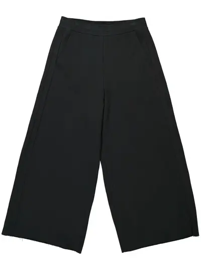 black cotton blend elasticated drawstring waistband slip pockets to the sides side seam detail wide leg raw-cut hem When buying this unisex item, keep in mind that it is graded in standard men's sizing.