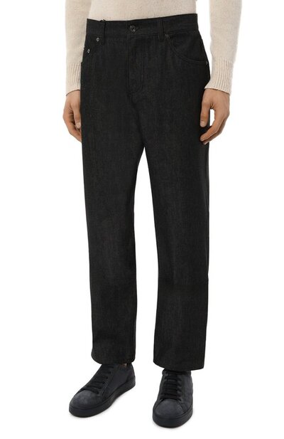 Джинсы из чистого хлопка украсили брендированным патчем на монетном кармане и крупной нашивкой в форме знаковой пластины — на заднем. Наши стилисты предлагают собрать повседневный образ, дополнив брюки свитером, бомбером и кедами.