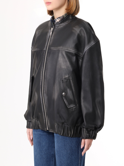 -Черная куртка из натуральной кожи с винтажным эффектом от BATS.