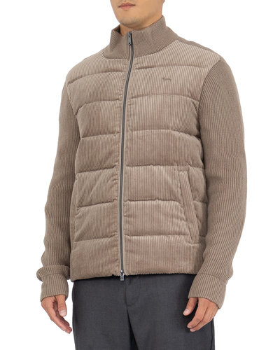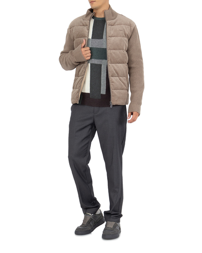 Фирменная мужская куртка-бомбер Harmont & Blaine идеально сочетает в себе комфорт и дизайн. Для этой модели были выбраны два материала: передняя часть выполнена из мягкого вельвета с приятной текстурой, а спинка и рукава - из шерсти, что обеспечивает тепло. Модель, которая идеально сидит по фигуре и обеспечивает свободу движений, также функциональна благодаря удобному воротнику-стойке, практичным карманам и двусторонней застежке-молнии спереди. На груди изображен талисман бренда – такса, вышитая нитками в тон.