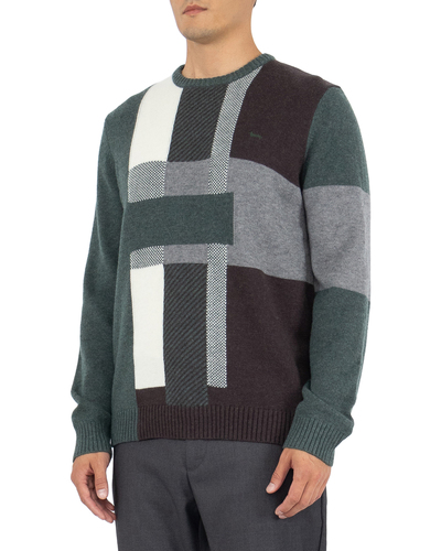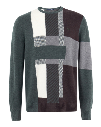 Мягкий, теплый и удобный мужской пуловер с круглым вырезом из смесовой шерсти украшен графичным рисунком, что свидетельствует о творческом чутье, характерном для Harmont & Blaine. Модель удобной посадки, предназначенная для обеспечения свободы движений, дополнена неизменным талисманом бренда: таксой Блейн, вышитой на груди.