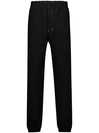 black cotton jersey texture elasticated drawstring waistband two side slit pockets two rear welt pockets slim cut elasticated ankles