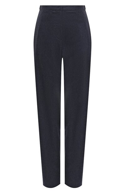 Укороченные брюки высокой посадки сшиты из эластичной шерстяной фланели с добавлением кашемира. Модель с двумя врезными карманами удачно дополнит базовый гардероб.