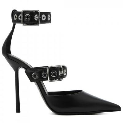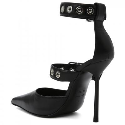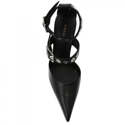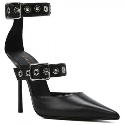 Туфли из натуральной кожи в чёрном цвете от Le Silla. Туфли от модного дома Le Silla — это творение ручной работы, которое гарантирует совершенство и внимание к деталям. Регулируемые ремешки, украшенные изысканными серебристыми люверсами, воплощают суть глэм-рока и обеспечивает идеальную посадку, окутывая ногу уверенностью и предлагая безупречный комфорт. Эта модель с головокружительным каблуком высотой 120 мм создана для смелых женщин, которые хотят выделиться ноткой бунтарской изысканности.