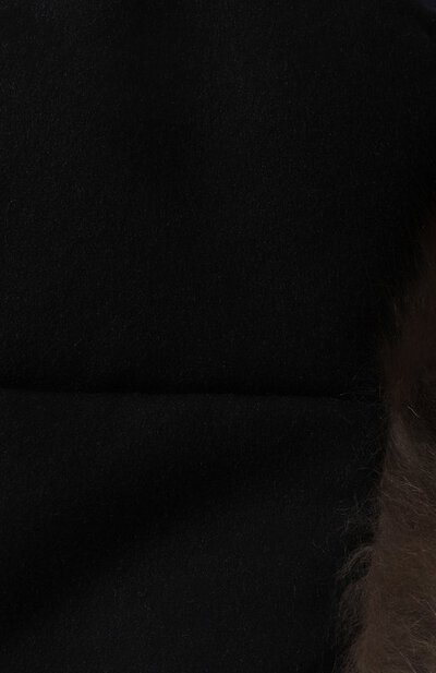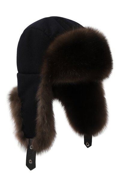 Верх коричневой шапки-ушанки выполнили из мягкого непродуваемого кашемира, а отделку — из шелковистого меха баргузинского соболя. Пушнину бережно выделали вручную, сделав тонкой и пластичной, но не в ущерб природной прочности, поэтому аксессуар сидит максимально комфортно и поддерживает оптимальный микроклимат. Наушники застегиваются короткими ремешками с кнопками.