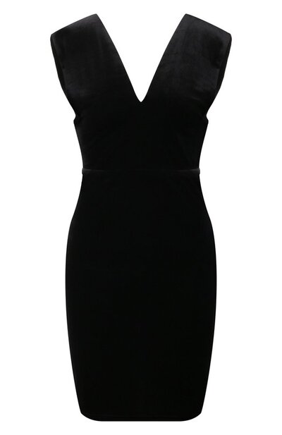 Для создания однотонного мини-платья использовали шелковистый материал с деликатным блеском. Облегающая модель с V-образными вырезами спереди и сзади станет идеальной основой вечернего образа.