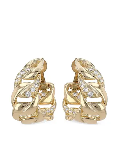 circa 1980s 18kt yellow gold polished finish clip-on design curb chain pavé-setting round brilliant-cut VS1-F/G white diamonds These earrings come as a pair. Condition: GOOD. This previously owned and used item is in good condition with minimal signs of use. This may include fading of material or plating and scratches.
