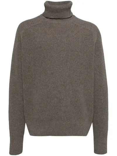 brown recycled wool mélange effect ribbed knit roll neck ribbed cuffs and hem straight hem