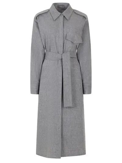-Серое платье-миди из тонкой шерсти от LORENA ANTONIAZZI.