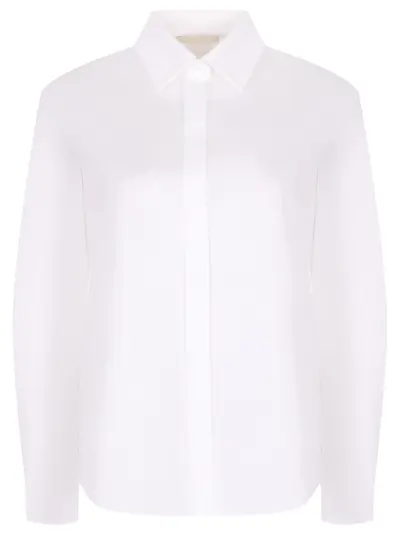 -Белая рубашка из хлопка от CIRCOLO 1901. -Модель свободного кроя с длинными рукавами, манжетами, отложным воротником, супатной застежкой на пуговицы. -Рубашка дополнит классические и офисные образы с брюками и юбками.