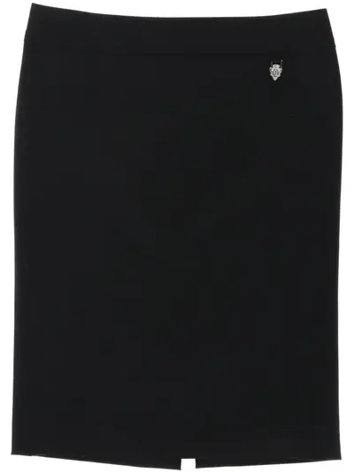 circa 2000s black stretch-wool interwoven design concealed rear zip fastening silver-tone plaque detail rear slit straight hem thigh-length Condition: GOOD. This previously owned and used item is in good condition with minimal signs of use. This may include fading of material or plating and scratches.