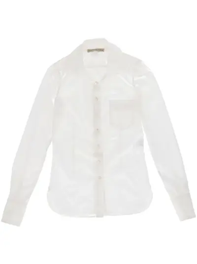 circa 2000s white cotton sheer front button fastening classic collar long sleeves chest flap pocket buttoned cuffs curved hem Condition: GOOD. This previously owned and used item is in good condition with minimal signs of use. This may include fading of material or plating and scratches.
