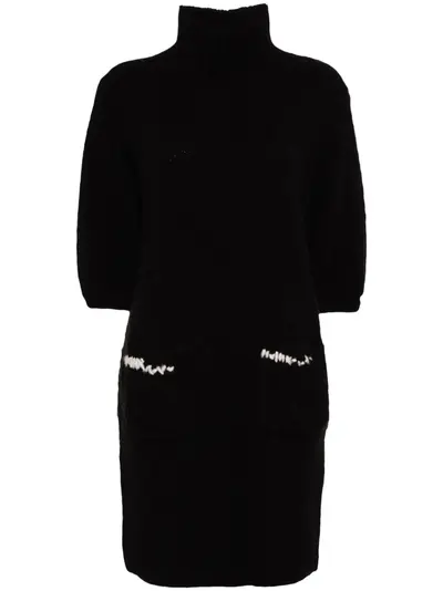black/white knitted construction chunky knit roll neck short sleeves two front patch pockets knee-length