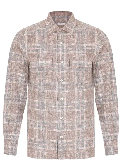 -Бежевая в клетку рубашка из плотной смесовой шерсти от KITON.