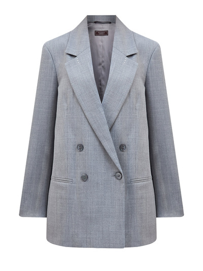 Peserico Двубортный жакет из костюмной шерсти с полупрозрачными пайетками 252347 (серый, lpn27427767)