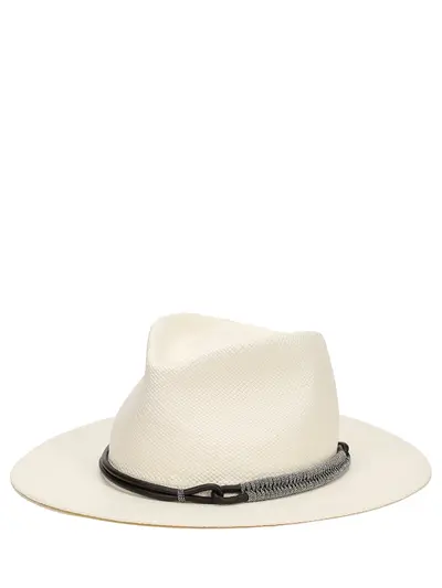 -Белая плетеная шляпа-федора из соломы от BRUNELLO CUCINELLI.