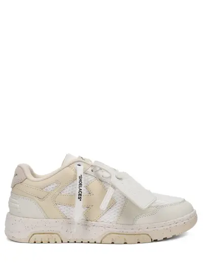 -Комбинированные кеды из кожи и сетчатого текстиля в сочетании белого и бежевого цветов от OFF-WHITE.