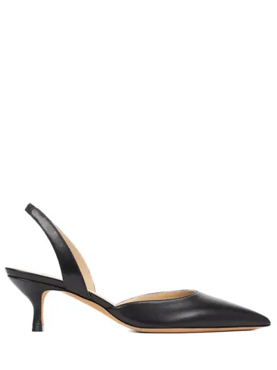 -Модель с заостренным мысом, открытой пяткой, ремешком с эластичной вставкой вокруг щиколотки, низким каблуком, подошвой и внутренней отделкой из натуральной кожи.