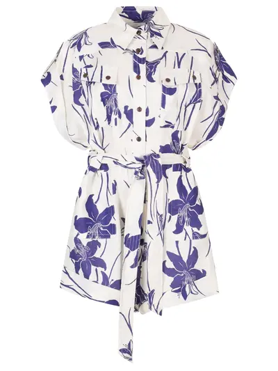 -Белый с крупным цветочным принтом ромпер изо льна от ZIMMERMANN.