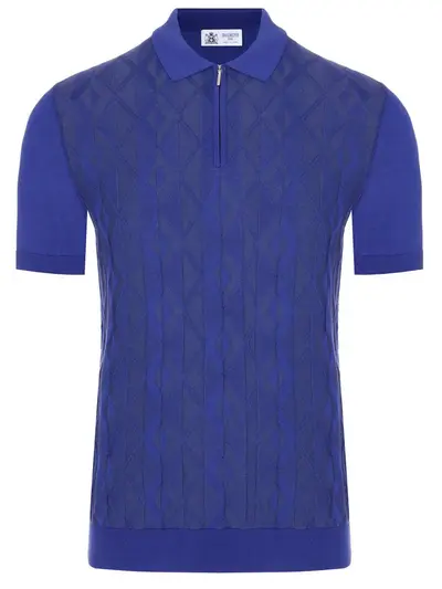 -Синее трикотажное поло из мягкого хлопка с фактурной вязкой от GRAN SASSO.
