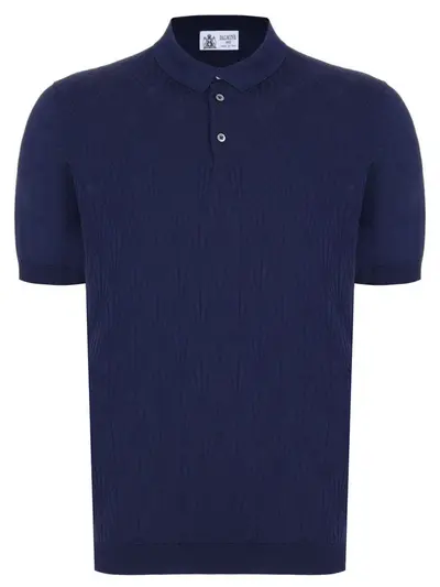 -Темно-синее трикотажное поло из мягкого хлопка с фактурным вывязанным узором от DALMINE.