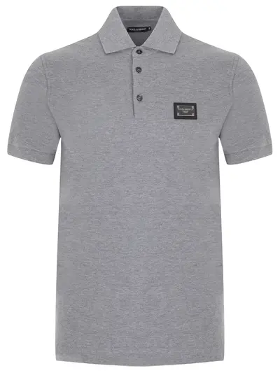 -Серое поло из мягкого хлопка от DOLCE&GABBANA.
