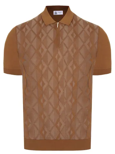 -Коричневое трикотажное поло из мягкого хлопка с фактурным вывязанным узором от DALMINE.