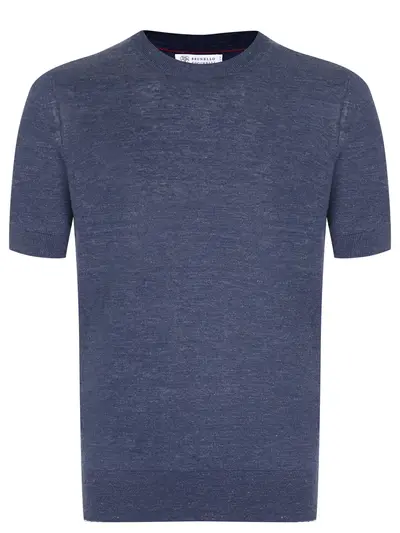 -Темно-синяя трикотажная футболка из меланжевого смесового льна от BRUNELLO CUCINELLI.