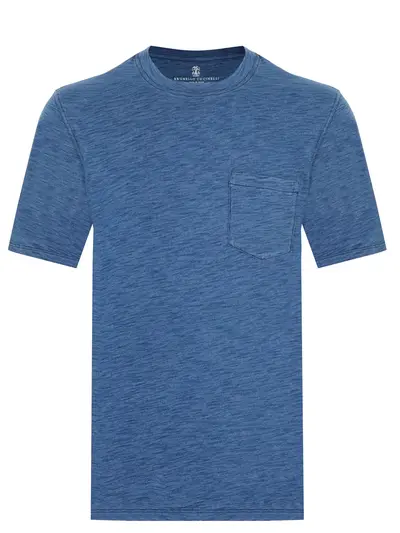 -Футболка из хлопка в синем цвете от BRUNELLO CUCINELLI.