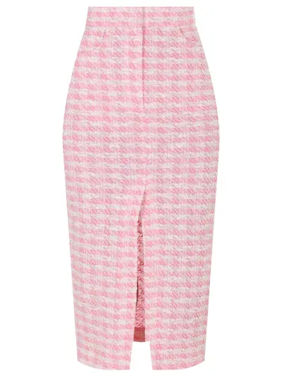 -Розовая юбка-миди Valerie купажированного состава из коллекции Flamant Rose с актуальным принтом "гусиная лапка" от ALINE.