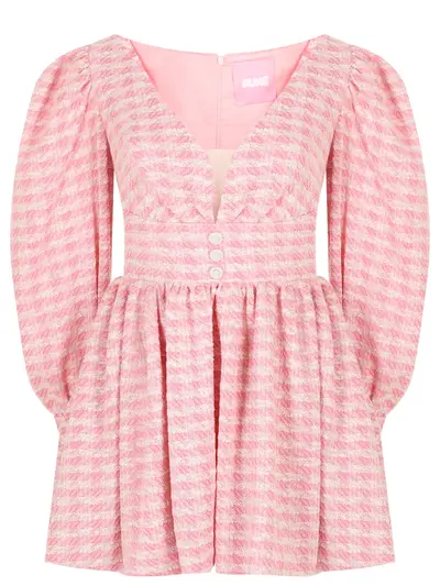 -Розовое мини-платье Miranda купажированного состава с актуальным принтом "гусиная лапка" от ALINE.