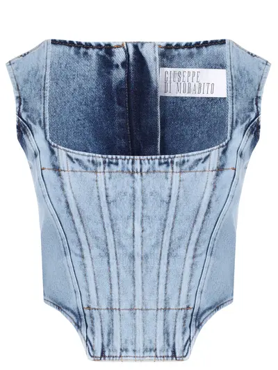 -Голубой корсет из хлопкового денима от GIUSEPPE DI MORABITO.