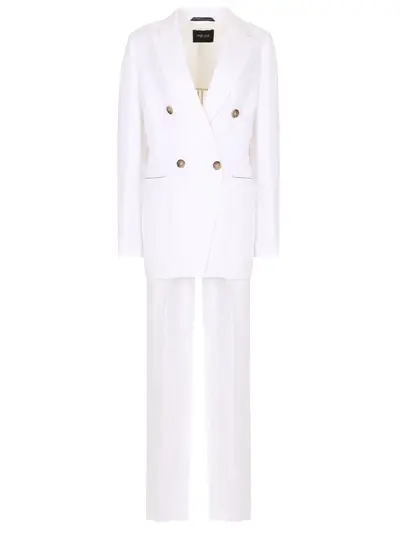 -Белый брючный костюм из смесового льна от FREE AGE.