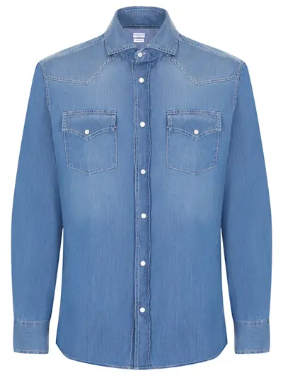 -Голубая рубашка из мягкого хлопкового денима от BRUNELLO CUCINELLI.