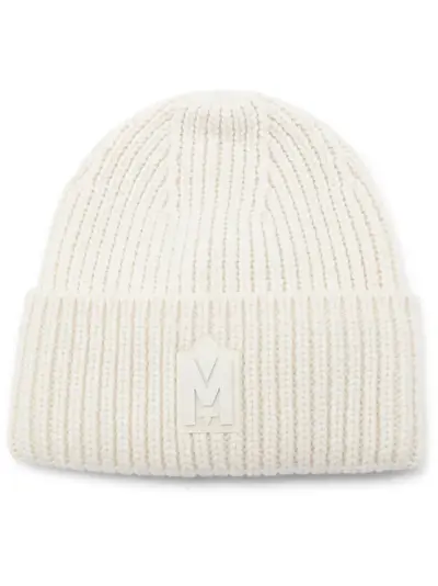 white recycled wool-recycled nylon blend chunky knit round crown appliqué logo turn-up wide brim