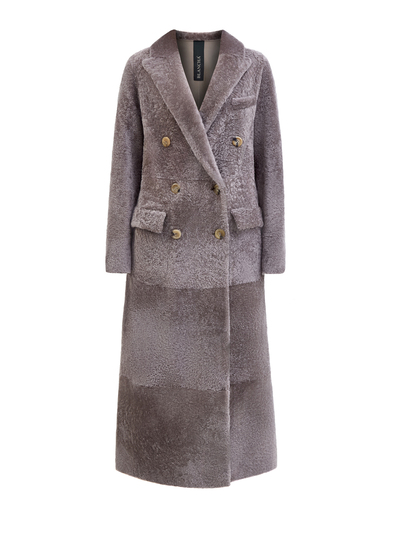 Blancha Удлиненная дубленка из овчины с двубортной застежкой 252321 (серый, lpn27502758)