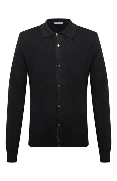 Рубашку с широкими эластичными поясом и манжетами выполнили из тонкого шерстяного трикотажа. Прямая модель, застегивающаяся пуговицами, сможет заменить легкий кардиган в повседневном образе с футболкой и брюками.