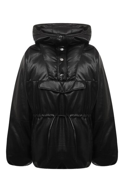 Куртку Osana сшили из фирменной альтернативной кожи Okobor, а подкладку выполнили из вискозы. Модель с объемным капюшоном, застегивающуюся кнопочной планкой, дополнили поясом-кулиской, а также декоративным карманом с клапаном и двумя функциональными боковыми.