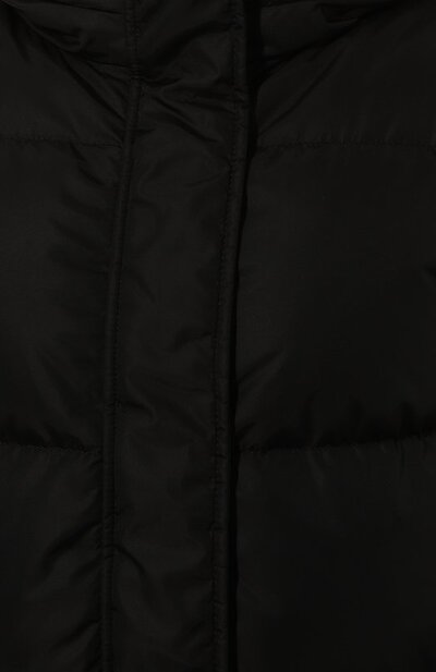 Для пошива стеганого пальто Nev на утином пуху использовали влагоотталкивающий нейлон. По бокам предусмотрели два прорезных кармана. Модель на молнии, скрытой под штормовой планкой с кнопками, дополнили капюшоном со съемной отделкой из меха кролика.