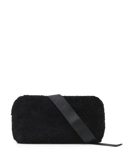 black shearling/faux leather panelled design top zip fastening adjustable waist strap main compartment internal logo patch